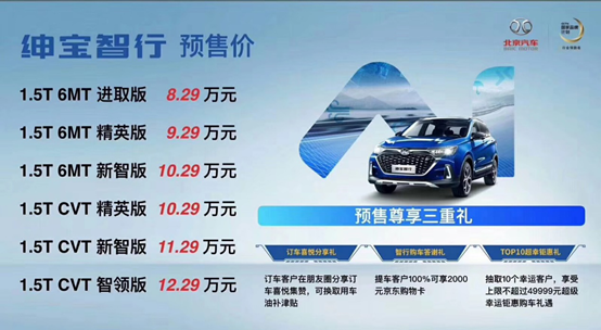 據悉,從8月31日成都車展開始,北京汽車已經啟動了紳寶智行預售活動,并推出訂車喜悅分享禮、智行購車答謝禮、TOP10超幸鉅惠禮三重大禮,最高能省49999元。