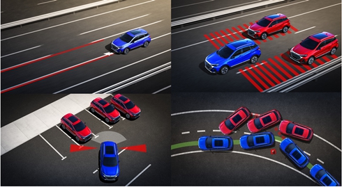 AI安全衛(wèi)士系統配置2個前雷達,3個倒車雷達,4個高清攝像頭,、360°隨動全景影像。