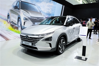 去年10月,現(xiàn)代汽車就在中國展出了氫燃料電池汽車現(xiàn)代NEXO。新京報(bào)記者 孫曉萌 攝