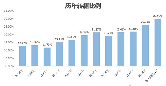 4月,使用年限在3-6年的二手車(chē)交易量最多,占比為43.65%,環(huán)比回落0.4個(gè)百分點(diǎn);其次是3年內(nèi),占比為23.8%,環(huán)比回落0.23個(gè)百分點(diǎn),1-4月,跨城市交易額比例達(dá)到29.95%。流通協(xié)會(huì)副秘書(shū)長(zhǎng)羅磊表示,隨著全國(guó)各區(qū)域二手車(chē)流通的壁壘逐步消除,二手車(chē)全國(guó)自由流通越來(lái)越快捷,這一利好因素促使國(guó)內(nèi)二手車(chē)交易轉(zhuǎn)籍比例在過(guò)去10年里呈逐年上升趨勢(shì)。