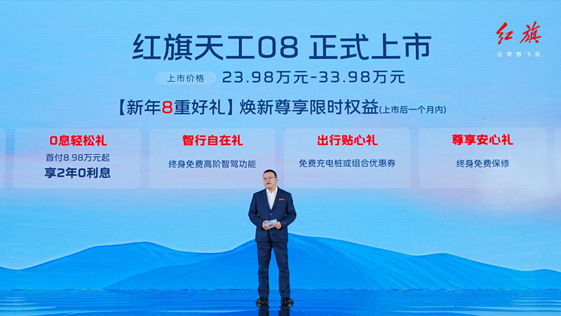 “旗創(chuàng)新高,天工逐耀”,1月7日,在長春一汽研發(fā)創(chuàng)新基地舉行的“燃動冰雪,見證‘相信’——紅旗天工08產(chǎn)品上市發(fā)布會”上,紅旗智造中大型豪華純電SUV天工08正式上市,以領(lǐng)先技術(shù)和卓越實(shí)力為用戶提供高品質(zhì)出行新選擇?;赝?024年,一汽紅旗銷量突破40萬輛,以強(qiáng)勁增勢再攀歷史高峰。站在40萬銷量新起點(diǎn),天工08將以進(jìn)取之姿為2025年新征程踏出堅(jiān)實(shí)首步。