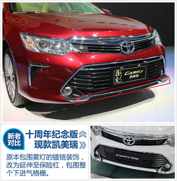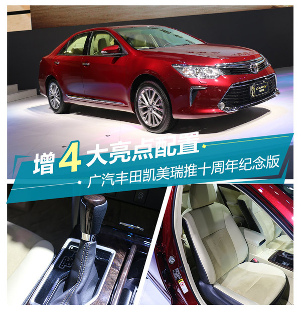 7月15日,為期10天的2016年長(zhǎng)春國(guó)際汽車(chē)博覽會(huì)在吉林省長(zhǎng)春市正式開(kāi)幕。開(kāi)幕式當(dāng)天,廣汽豐田正式發(fā)布凱美瑞十周年紀(jì)念版車(chē)型,共推出包括混動(dòng)版在內(nèi)的9款車(chē)型。新車(chē)在外觀和配置方面進(jìn)行了一些升級(jí),將于今年8月到店上市。
