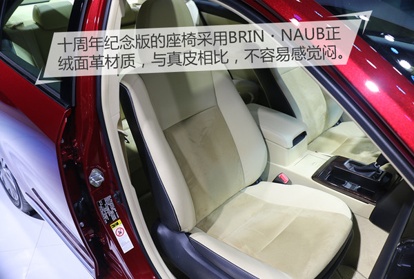 十周年紀(jì)念版凱美瑞將原本就已經(jīng)是真皮包裹的座椅更換了“新裝”,采用了最新研發(fā)的BRIN?NAUB材質(zhì)的正絨面革。與真皮材質(zhì)相比,這種全新的材料不容易有悶的感覺(jué),夏天的時(shí)候不會(huì)越坐越熱。冬天的時(shí)候,剛坐進(jìn)車(chē)?yán)镆膊粫?huì)感覺(jué)特別涼,這樣直接省去了再配坐墊的麻煩。BRIN?NAUB材質(zhì)還具有更好的彈性和延展性,長(zhǎng)期坐壓之后不易變形。