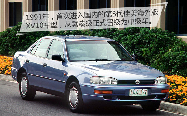 在5代之前,最先進(jìn)口引入國(guó)內(nèi)的是第3代佳美,這是非常具有歷史意義的一代車(chē)型,不但正式確立了佳美在豐田“全球車(chē)”陣營(yíng)中的主力位置,還順帶打開(kāi)了中國(guó)市場(chǎng)。首次進(jìn)入國(guó)內(nèi)市場(chǎng)的是第3代佳美(1991-1996)針對(duì)海外市場(chǎng)推出的XV10車(chē)型,與日本本土的V30不同,XV10從一輛緊湊級(jí)轎車(chē)“成長(zhǎng)為”一輛B級(jí)車(chē)。