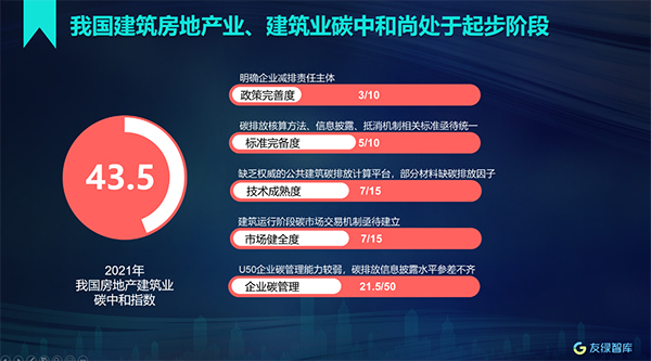 日前,由友綠智庫主辦的2021房地產(chǎn)建筑業(yè)碳中和指數(shù)暨2021《中國綠色地產(chǎn)發(fā)展報告》發(fā)布會在京舉行。會議深度解讀了房地產(chǎn)建筑業(yè)在“雙碳”領域的政策、技術、標準、市場和企業(yè)的應對之策。