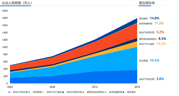 居住服務業(yè)從業(yè)人員規(guī)模及增速(數據來源:國家統(tǒng)計局,貝殼研究院整理)