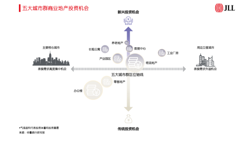 仲量聯(lián)行中國(guó)區(qū)研究部總監(jiān)姚耀表示:“五大城市群中的主要核心城市將在支撐傳統(tǒng)的辦公樓和零售地產(chǎn)市場(chǎng)的同時(shí),催生產(chǎn)業(yè)園區(qū)、長(zhǎng)租公寓等新興投資機(jī)會(huì);周邊衛(wèi)星城則將承接需求外溢,物流地產(chǎn)將迎重大利好,工業(yè)廠房、數(shù)據(jù)中心等也將獲得投資者的關(guān)注。隨著各物業(yè)類型的需求進(jìn)一步演進(jìn),五大城市群將推動(dòng)商業(yè)地產(chǎn)投資機(jī)會(huì)愈發(fā)多元化。”