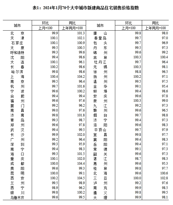 | 國家統(tǒng)計(jì)局:1月70個(gè)大中城市中商品住宅銷售價(jià)格環(huán)比下降城市個(gè)數(shù)減少 |
