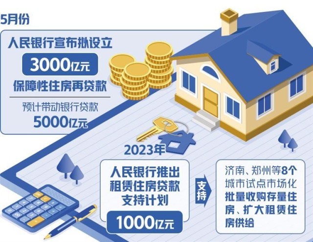 5月,人民銀行宣布擬設(shè)立3000億元保障性住房再貸款,按照“政府主導(dǎo)、市場化運作”的思路,由中國人民銀行提供低成本再貸款資金,激勵21家全國性銀行機(jī)構(gòu)按照市場化、法治化原則,支持地方國有企業(yè)以合理價格收購已建成存量商品房,用作配售型或配租型保障性住房,預(yù)計帶動銀行貸款5000億元。