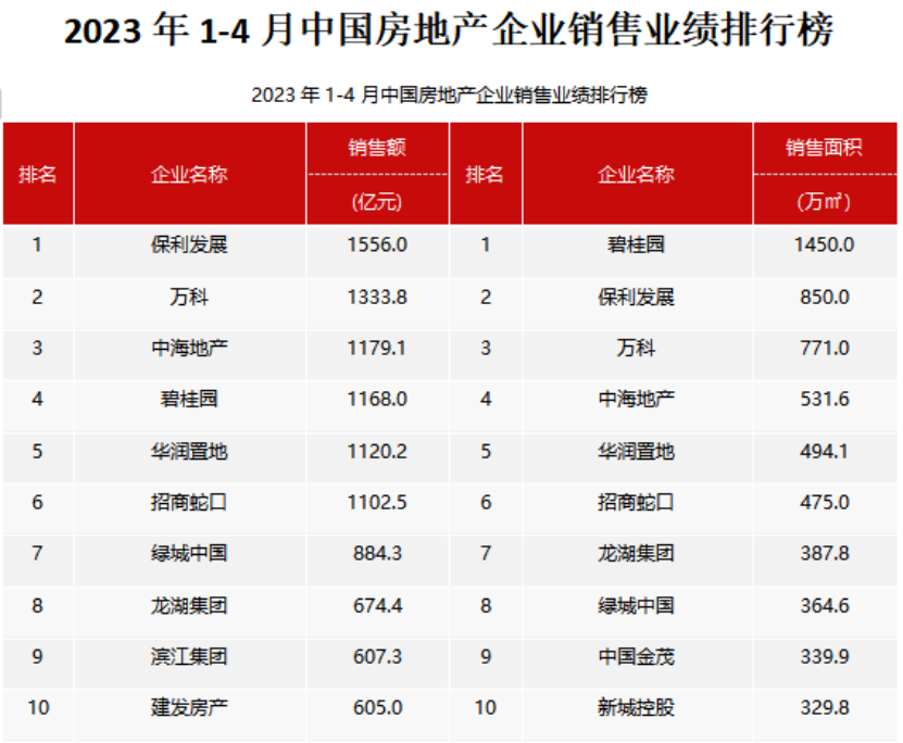 頭部房企銷售增速較快,保利發(fā)展位居銷售額首位