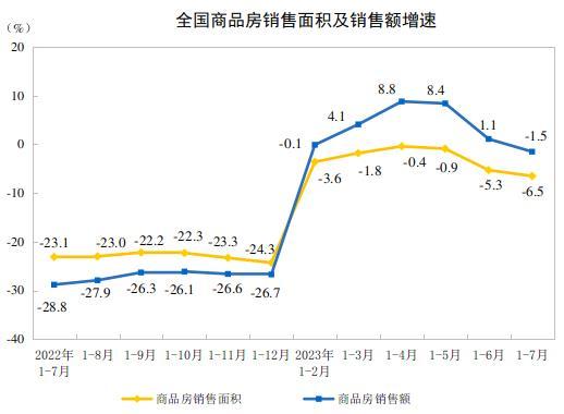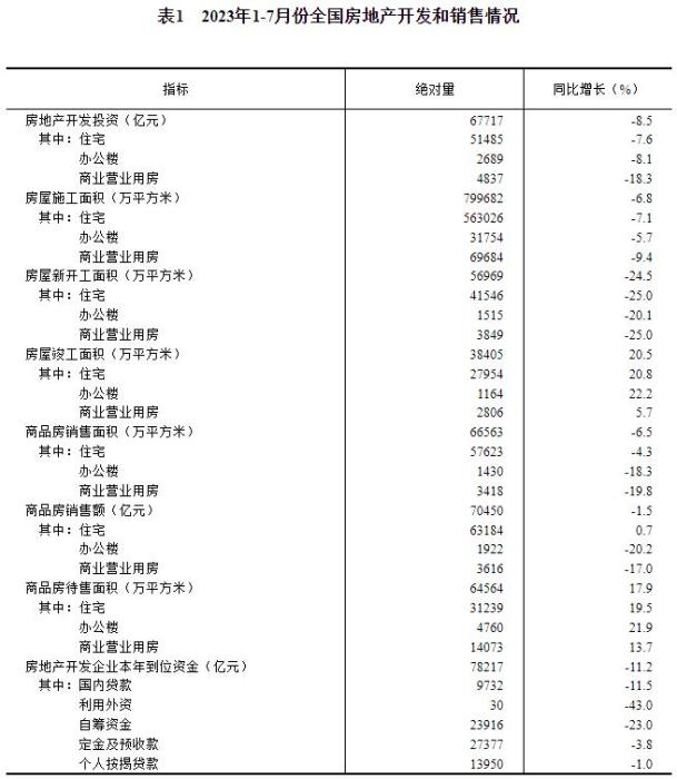 中新網(wǎng)8月15日電 國家統(tǒng)計(jì)局網(wǎng)站15日公布2023年1—7月份全國房地產(chǎn)市場(chǎng)基本情況。1—7月份,全國房地產(chǎn)開發(fā)投資67717億元,同比下降8.5%;商品房銷售額70450億元,下降1.5%。
