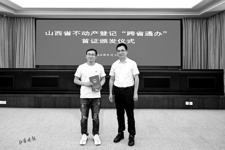9月15日,山西省不動(dòng)產(chǎn)登記“跨省通辦”啟動(dòng)暨晉津首證頒發(fā)儀式舉行,山西省自然資源廳和天津市規(guī)劃和自然資源局簽訂《晉津不動(dòng)產(chǎn)登記“跨省通辦”合作框架協(xié)議書(shū)》,并發(fā)出首本“跨省通辦”不動(dòng)產(chǎn)權(quán)證書(shū)。此舉標(biāo)志著晉津兩地不動(dòng)產(chǎn)登記“跨省通辦”正式開(kāi)啟,兩地的企業(yè)、群眾在本地即可通過(guò)“跨省通辦”窗口辦理不動(dòng)產(chǎn)登記業(yè)務(wù)。