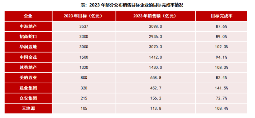 從銷售目標完成率來看,2023年,9家房企目標完成率均值為98.5%,其中華潤、越秀地產(chǎn)、建業(yè)集團、天地源完成全年目標。