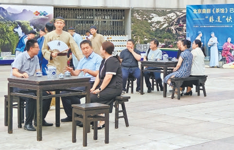“喲,這位爺,您里邊請!”昨天下午,北京北站下沉廣場上,一位位身著戲服的曲劇演員登場,邀請過往行人移步至一旁的“茶館”品茶。旅客被演員帶入沉浸式表演中,現(xiàn)場不時發(fā)出笑聲和喝彩聲。原來這是北京市重點站區(qū)管理委員會北站辦與北京市曲劇團聯(lián)合策劃的“黨建引領·京韻暢行”快閃活動。此次快閃活動通過沉浸式表演,將北京曲劇《茶館》片段融入旅客和市民的出行場景。