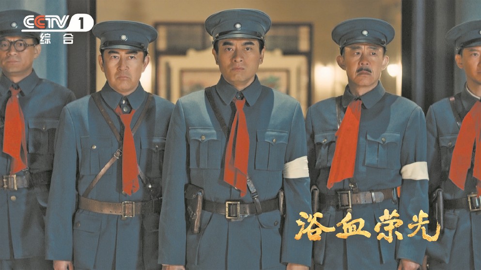 《浴血榮光》從歷史中鉤沉細(xì)節(jié),還原了中國(guó)共產(chǎn)黨人發(fā)動(dòng)南昌起義的過程?!啊由浇y(tǒng)一’的口令在片場(chǎng)很振奮人心!”那場(chǎng)戲至今在陳龍心頭翻滾。進(jìn)組前,他見過《八一南昌起義》的油畫,看過湯曉丹導(dǎo)演的上影廠經(jīng)典影片《南昌起義》,對(duì)周恩來振臂朝天連發(fā)三槍的場(chǎng)景,毫不陌生。但當(dāng)《浴血榮光》劇組正式拍攝那場(chǎng)戲,周恩來從門洞里走出,身邊將星聚首,面前、身后都堅(jiān)定地站著無數(shù)人,打響武裝反抗國(guó)民黨反動(dòng)派的第一槍,“那種無以言表的激動(dòng)、心靈的震撼,可能只有我自己能真切體會(huì)到”。