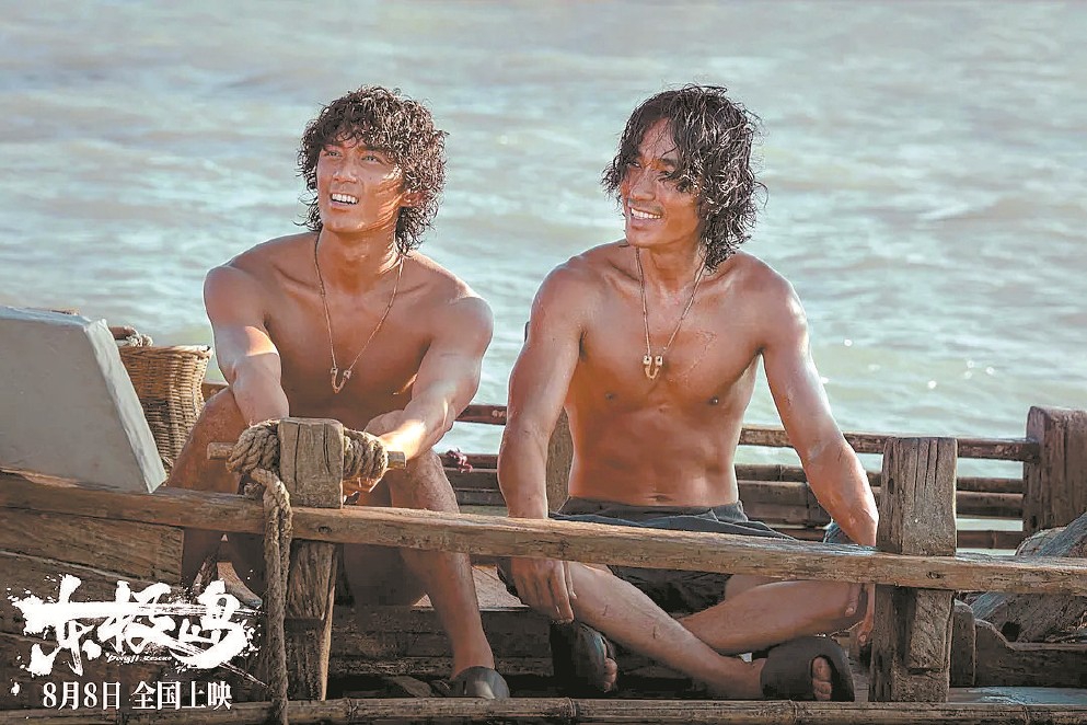 《東極島》劇照,朱一龍(右)飾演阿赑,吳磊飾演阿蕩。兄弟倆從最初為生存出海,到目睹日軍暴行后主動承擔責(zé)任,最終成為救援主力,主打“平凡人變英雄”的成長線。
