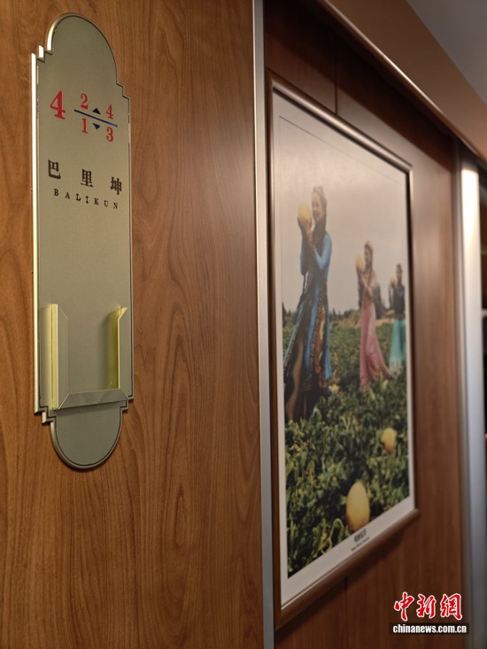 穿行在車廂中間,處處可見新疆的濃濃風(fēng)情。秉持“一車一風(fēng)景”的理念,車廂內(nèi)每個(gè)房間均以新疆知名景區(qū)命名,房間門口還張貼著對(duì)應(yīng)景點(diǎn)的美食美景海報(bào),讓游客未至景區(qū),先浸風(fēng)情。