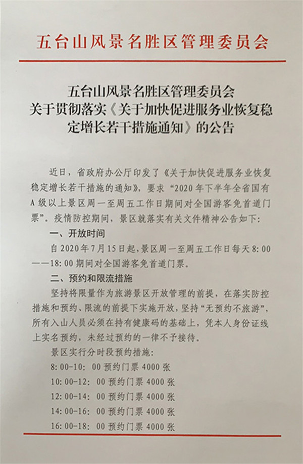 五臺(tái)山風(fēng)景名勝區(qū)管理委員會(huì)關(guān)于貫徹落實(shí)《關(guān)于加快促進(jìn)服務(wù)業(yè)恢復(fù)穩(wěn)定增長(zhǎng)若干措施通知》的公告