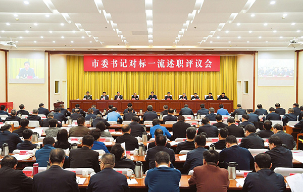 圖為市委書記對標(biāo)一流述職評議會會場。 本報記者 李聯(lián)軍攝