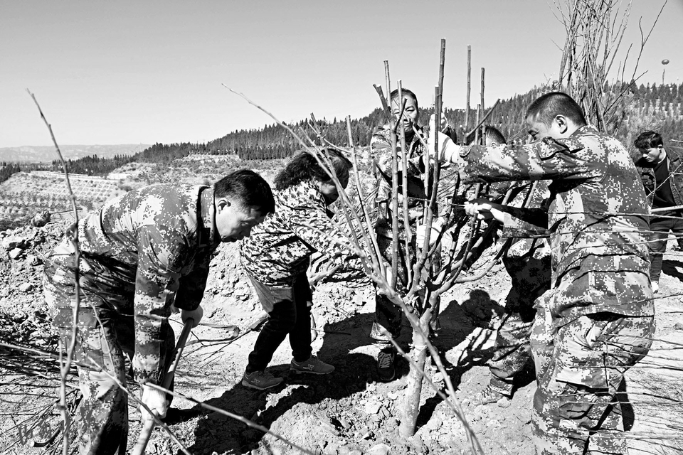 約兩個小時的時間,在場的學生、官兵、警察、民企職工等500余人,共義務(wù)植樹1300余株。
