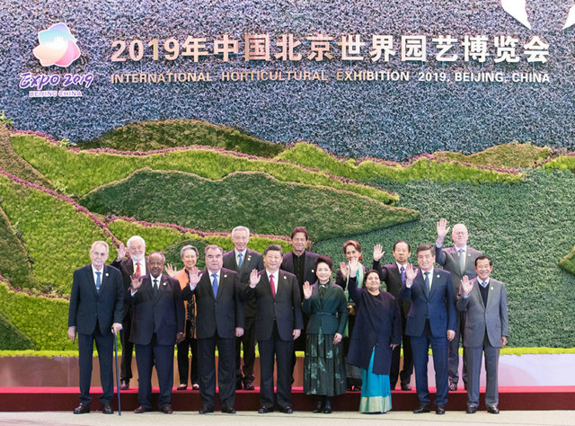 4月28日,國家主席習近平在北京延慶出席2019年中國北京世界園藝博覽會開幕式,并發(fā)表題為《共謀綠色生活,共建美麗家園》的重要講話。新華社記者 鞠鵬 攝