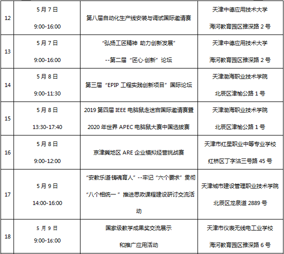 附:2019年全國職業(yè)院校技能大賽主賽場(天津)重點活動安排
