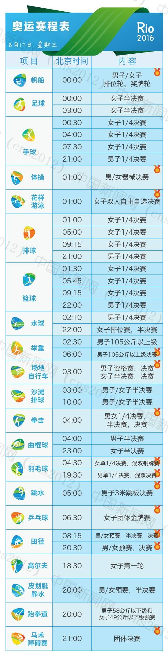 里約奧運會完整賽程表