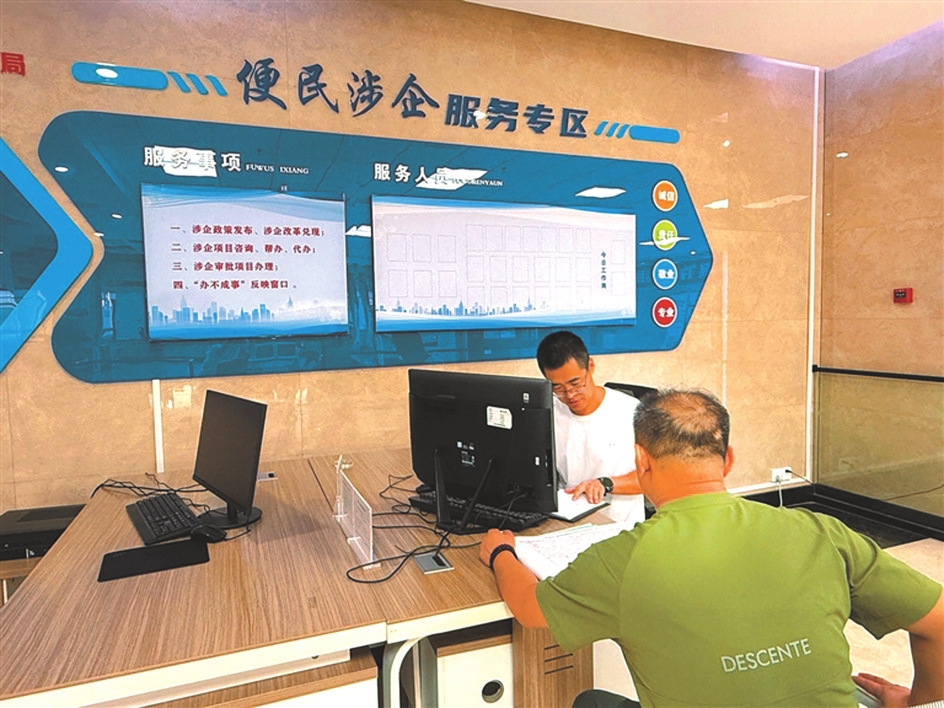 市政務(wù)大廳一樓稅務(wù)專區(qū)導(dǎo)稅臺(tái)不僅是稅務(wù)綜合服務(wù)前臺(tái),還是10項(xiàng)簡事快辦服務(wù)臺(tái)。