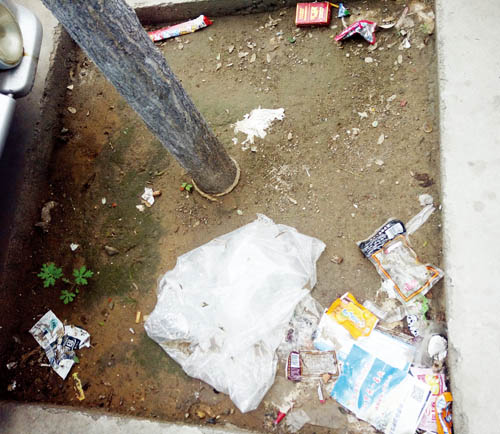近日,記者在華榮區(qū)發(fā)現(xiàn),路旁的很多樹坑被當成了垃圾桶,人們隨手將果皮紙屑塑料袋扔在了里面,影響市容不說也污染了環(huán)境。樹坑內(nèi)垃圾不但難于清理,而且污水滲入土內(nèi)會導(dǎo)致樹木根部和樹皮底部的腐爛。同時,長久被油污浸泡的土地會變成“ 油土”,樹木無法正常呼吸,最終導(dǎo)致死亡。馬路兩旁的行道樹不僅可以凈化空氣、美化市容市貌,在夏天的時候還能給行人提供天然的蔭涼。希望附近的居民能夠管住自己的手,不要再向樹坑內(nèi)扔垃圾,養(yǎng)成愛護環(huán)境的文明習(xí)慣。實習(xí)記者 王菲 攝
