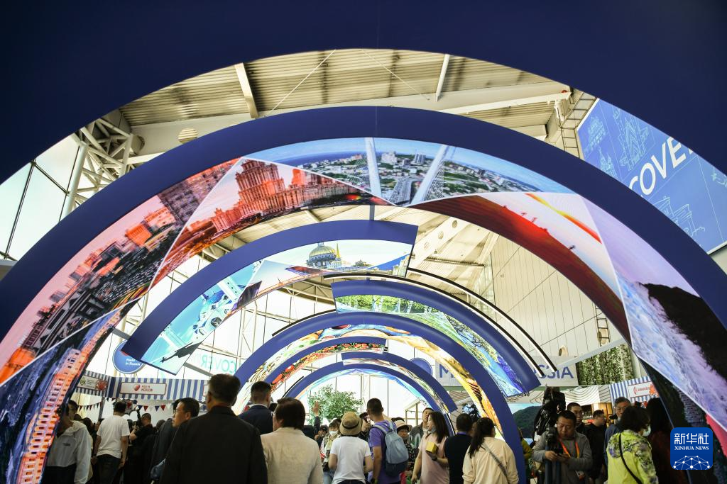 5月18日,人們走進在哈爾濱國際會展中心舉行的第八屆中俄博覽會展館。新華社記者 王松 攝