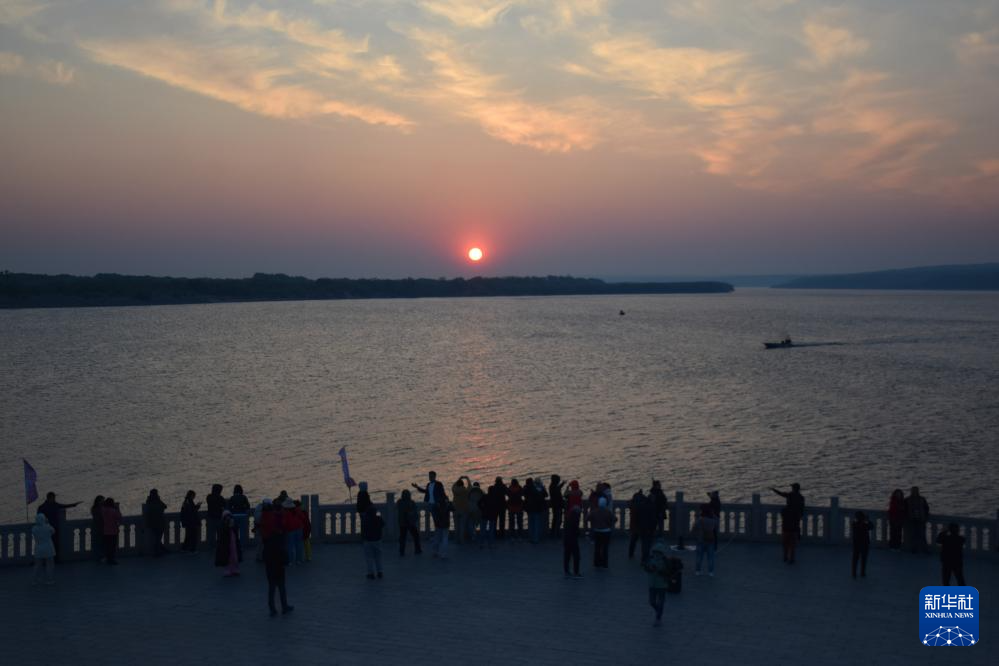 游客在“華夏東極”黑龍江撫遠觀賞日出美景(5月19日攝)。新華社發(fā)(官長青攝)