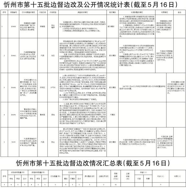 我市高度重視,立即組織查處,截至5月16日,督辦的5件群眾反映問題已辦結(jié)。其中,確認不屬實1件;確認部分屬實4件。對于部分屬實已辦結(jié)的環(huán)保問題,分別采取了相應(yīng)處理措施,共罰款10萬元,對9名相關(guān)責任人進行約談。對5件群眾反映問題調(diào)查處理情況進行了信息公開。