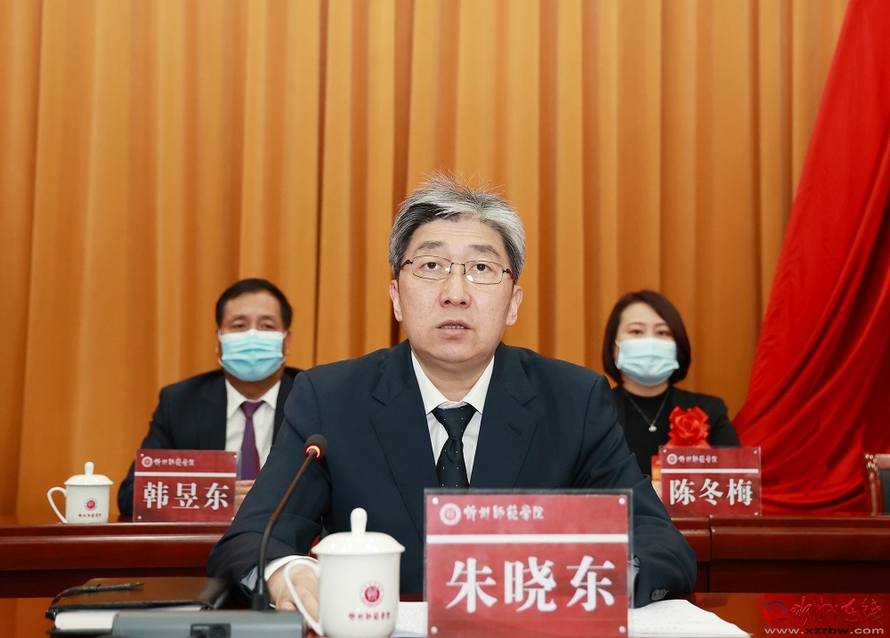 朱曉東指出,長(zhǎng)期以來,忻州師院在黨委的堅(jiān)強(qiáng)領(lǐng)導(dǎo)下,凝心聚力肩負(fù)新使命,集思廣益展現(xiàn)新業(yè)績(jī),培養(yǎng)了一批又一批思想素質(zhì)高、業(yè)務(wù)技能好、實(shí)踐能力強(qiáng)的優(yōu)秀中小學(xué)教師和建設(shè)人才,在服務(wù)地方經(jīng)濟(jì)社會(huì)發(fā)展中提供了忻師智慧、彰顯了忻師力量、作出了忻師貢獻(xiàn)。希望忻州師院立足忻州、胸懷天下,把握大勢(shì)、放眼未來,向著建設(shè)特色鮮明、國(guó)內(nèi)知名的高水平應(yīng)用型師范大學(xué)這一目標(biāo)持續(xù)前進(jìn)。一是要強(qiáng)化黨的領(lǐng)導(dǎo),始終把黨的政治建設(shè)擺在首位,認(rèn)真落實(shí)管黨治黨、辦學(xué)治校的主體責(zé)任,全面加強(qiáng)黨的各項(xiàng)建設(shè),不斷推進(jìn)黨的建設(shè)新的偉大工程,為實(shí)現(xiàn)學(xué)院發(fā)展藍(lán)圖提供堅(jiān)強(qiáng)的政治和組織保證。二是要強(qiáng)化奮進(jìn)意識(shí),深入學(xué)習(xí)貫徹習(xí)近平總書記關(guān)于教育工作的重要論述和全國(guó)教育大會(huì)精神,認(rèn)真落實(shí)立德樹人根本任務(wù),持續(xù)實(shí)施“1233”發(fā)展戰(zhàn)略,特別是要厚植辦學(xué)情懷,深化改革創(chuàng)新,彰顯本土特色,做強(qiáng)優(yōu)勢(shì)學(xué)科,強(qiáng)化交流協(xié)作,實(shí)現(xiàn)城市與學(xué)校的交相輝映、共進(jìn)共榮。三是要強(qiáng)化服務(wù)意識(shí)。師院新校區(qū)建成使用,表明了市委、市政府一以貫之興教育、強(qiáng)教育的鮮明態(tài)度,更是為忻州師院的明天加油鼓勁。希望忻州師院進(jìn)一步強(qiáng)化服務(wù)意識(shí),與區(qū)域發(fā)展布局同頻共振,在服務(wù)中心大局中精準(zhǔn)發(fā)力,著力提升服務(wù)地方經(jīng)濟(jì)社會(huì)發(fā)展的能力和水平,為忻州全方位推動(dòng)高質(zhì)量發(fā)展作出新的更大貢獻(xiàn)。市委、市政府將一如既往地把教育擺在優(yōu)先發(fā)展的戰(zhàn)略位置,一如既往地支持忻州師院的建設(shè)和發(fā)展,讓忻州師院越辦越好。
