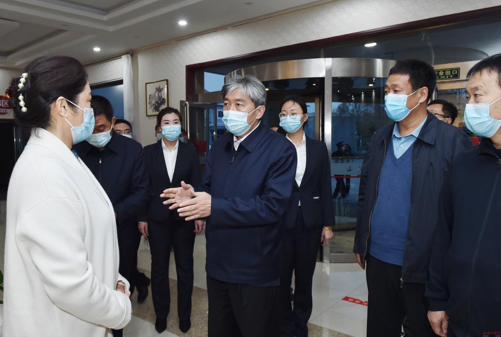 朱曉東一行先后來(lái)到忻州城區(qū)七一路和頓村、奇村等地酒店隔離點(diǎn),每到一處,朱曉東都通過(guò)實(shí)地察看、聽(tīng)取匯報(bào)、交流詢問(wèn)等方式,詳細(xì)了解隔離場(chǎng)所管理運(yùn)行、通道設(shè)置、工作人員配備、值班值守、環(huán)境消殺、物資儲(chǔ)備等情況,并就在督查中發(fā)現(xiàn)的問(wèn)題現(xiàn)場(chǎng)提出整改意見(jiàn)。調(diào)研中,朱曉東還向奮戰(zhàn)在一線的醫(yī)護(hù)人員、后勤保障人員表示慰問(wèn),叮囑他們既要保障好隔離人員的正常生活,也要加強(qiáng)自我防護(hù),確保各項(xiàng)工作流程形成閉環(huán),堅(jiān)決杜絕出現(xiàn)交叉感染。