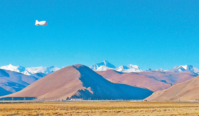 珠穆朗瑪峰前的“極目一號”Ⅲ型浮空艇。中國科學(xué)院供圖