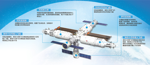 經歷9種組合體構型,計劃做2至3次出艙活動