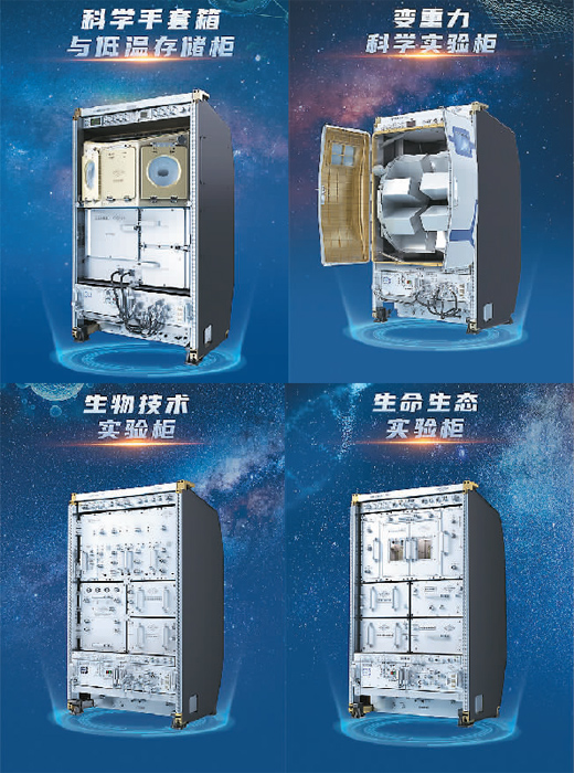 除了無容器材料實驗柜之外,天和核心艙內(nèi)還有高微重力實驗柜,為航天醫(yī)學分析、基礎物理研究等提供理想的微重力實驗環(huán)境。問天實驗艙部署了生命生態(tài)實驗柜、生物技術實驗柜、科學手套箱與低溫存儲柜、變重力科學實驗柜以及艙外暴露實驗裝置等科學實驗設施。夢天實驗艙則配置了13個標準載荷機柜,目前已裝載了超冷原子物理實驗柜、高精度時頻實驗柜、高溫材料科學實驗柜、兩相系統(tǒng)實驗柜、流體物理實驗柜、燃燒科學實驗柜等實驗“神器”,主要面向微重力科學研究。