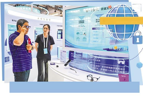 觀眾在云南昆明舉行的2025年國家網絡安全宣傳周配套活動上體驗智能眼鏡。新華社記者 彭奕凱攝