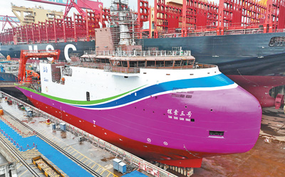 該船建造內容包括船舶系統(tǒng)、載人深潛水面支持系統(tǒng)和綜合科考作業(yè)系統(tǒng),續(xù)航力1.5萬海里、載員80人,可為深遠海地質、環(huán)境和生命科學相關前沿問題研究提供所需的樣品和環(huán)境數據,支持深海核心技術裝備的海上試驗與應用。此次出塢后,將開展設備調試和系統(tǒng)聯(lián)調、船舶海試和科考設備海試等,預計于2025年完工交船、投入海上作業(yè)。