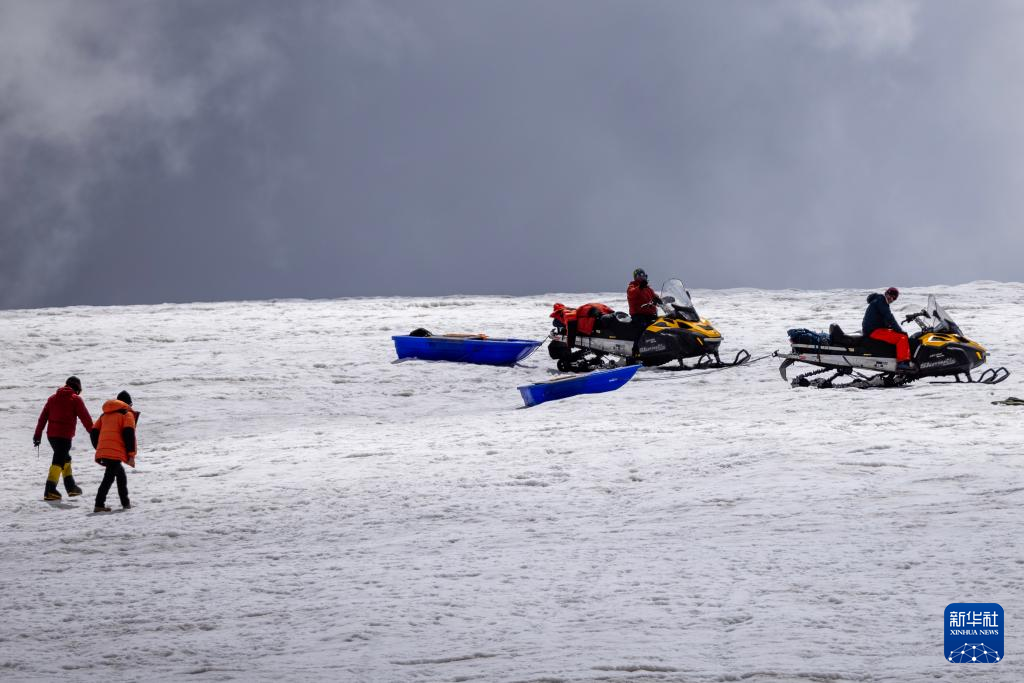 科考隊(duì)員準(zhǔn)備搭乘雪地摩托前往冰原深處作業(yè)。新華社記者 姜帆 攝