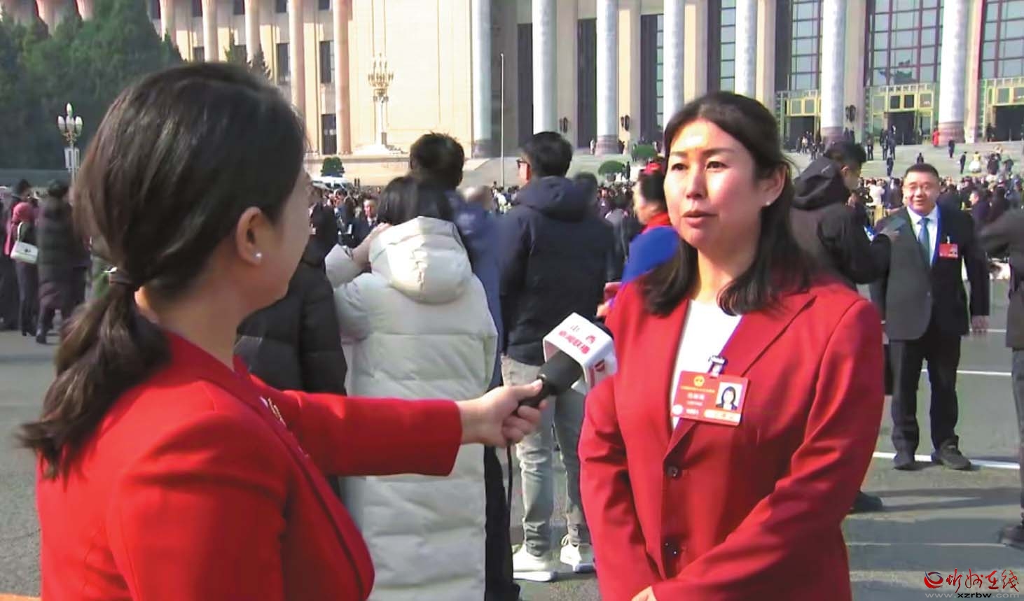 圖為全國(guó)人大代表范銀蓮接受記者采訪。