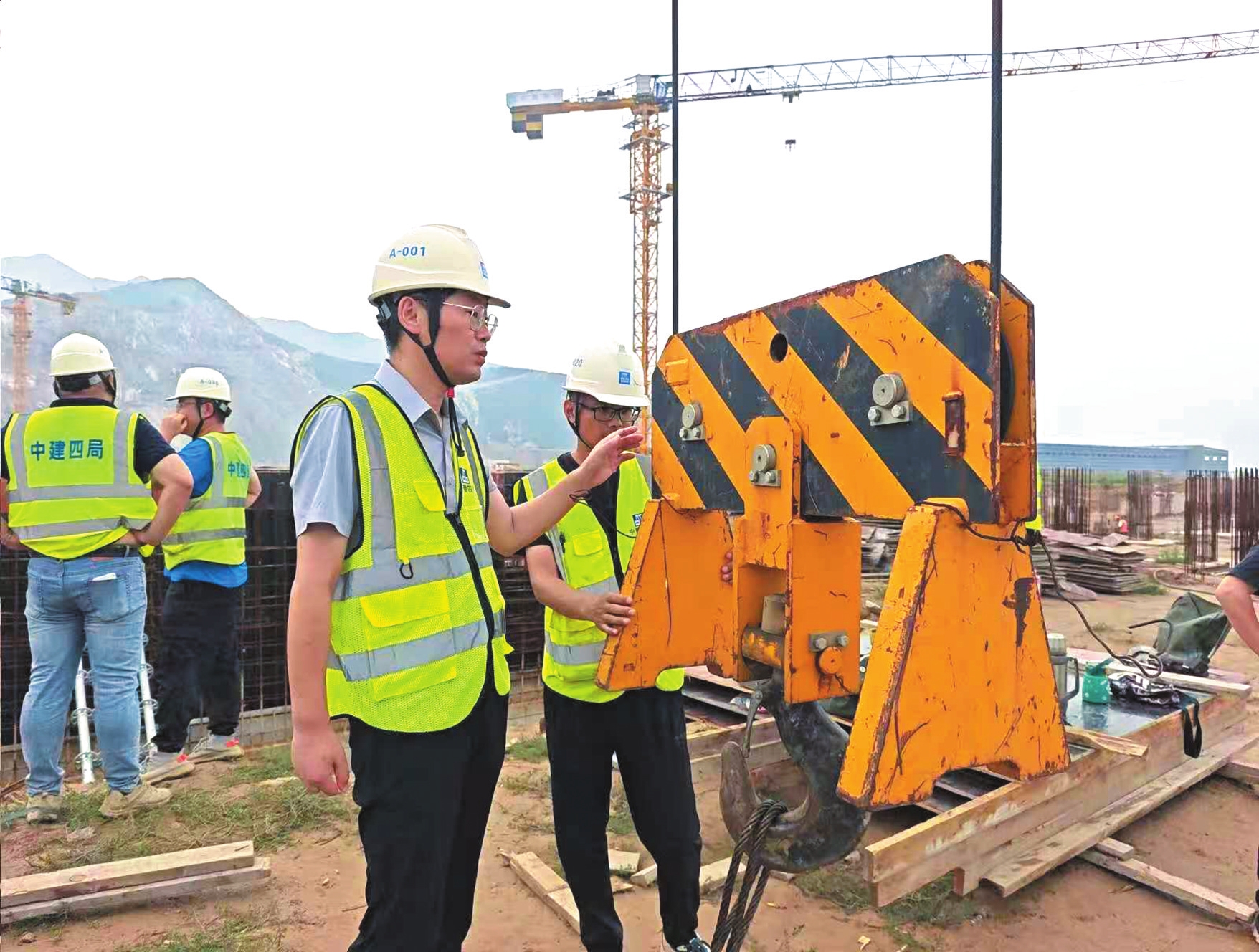 張曉瓏在施工工地現(xiàn)場(chǎng)指導(dǎo)工作