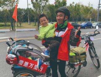 幾個(gè)月前,湖南株洲45歲的羅新華做出一個(gè)很多人難以理解的決定,他要騎自行車帶著三歲半的兒子高高進(jìn)行一次長(zhǎng)達(dá)數(shù)千公里的長(zhǎng)途騎行。10月2日出發(fā),目前他已騎行1200多公里,途經(jīng)湖南、湖北、江西、安徽,到達(dá)江蘇境內(nèi)。沿途,高高見到了大自然中很多新鮮事物,而羅新華也借這次機(jī)會(huì)第一次與兒子長(zhǎng)時(shí)間朝夕相處。