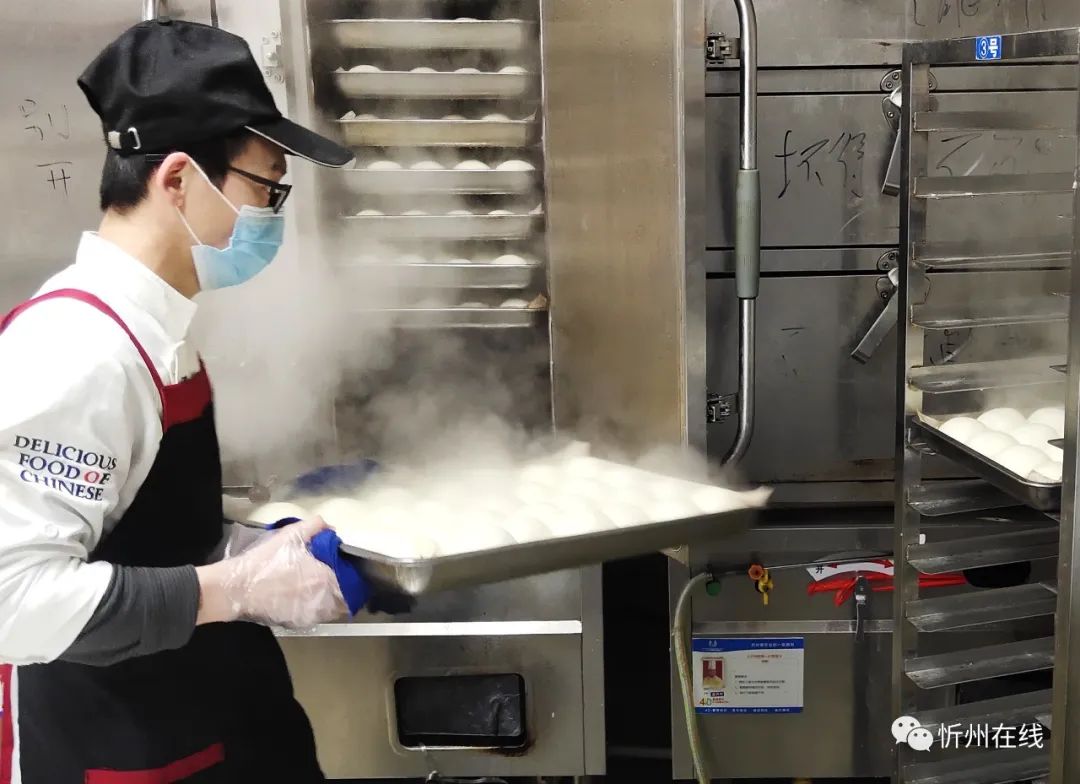 紅燒肉、過油肉、涼拌菜……12月2日下午,忻州丁方文化餐飲管理有限公司的廚師們正在有序忙碌著,一道道剛出鍋的飯菜被分餐員迅速分裝、打包、裝箱,他們要趕在18點(diǎn)之前送往忻州市級方艙醫(yī)院。