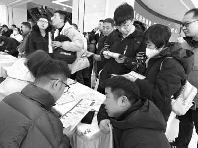 2月5日,正月初八,太原市新春首場(chǎng)大型招聘會(huì)在山西太原人力資源服務(wù)產(chǎn)業(yè)園拉開(kāi)帷幕。上午9時(shí)許,現(xiàn)場(chǎng)的求職者便已經(jīng)比肩接踵,全力奔赴各自心儀的企業(yè)展位?!皪徫欢?,求職者也多,感覺(jué)比過(guò)年時(shí)逛廟會(huì)還熱鬧?!鼻舐氄呲w先生笑著說(shuō)。