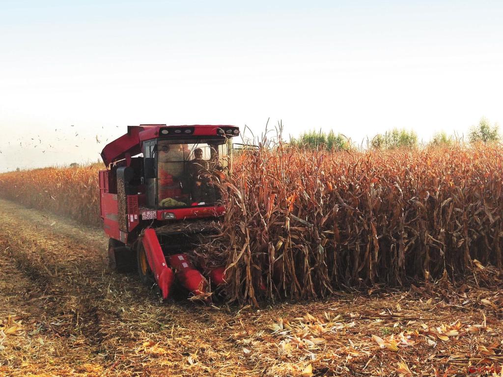 10月9日,玉米收割機在忻府區(qū)北義井鄉(xiāng)高家莊村開展機械化作業(yè)。馮偉倫 攝
