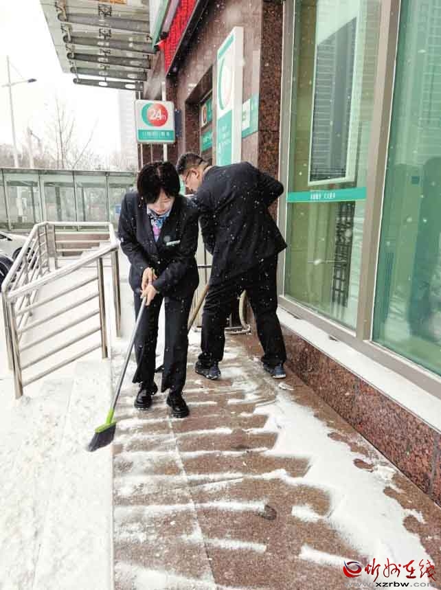 面對我市首場強降雪,農行忻州分行員工以雪為令,及時清掃網(wǎng)點及周邊區(qū)域,確保服務通道暢通無阻,以實際行動傳遞了溫暖的金融服務。(殷俊攝)