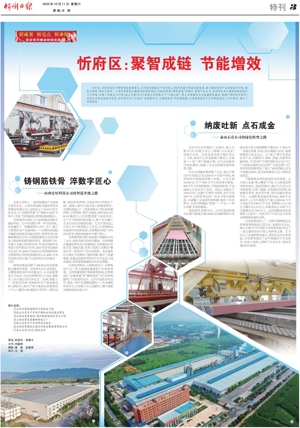 近年來,忻府區(qū)堅(jiān)定不移貫徹新發(fā)展理念,以科技創(chuàng)新驅(qū)動產(chǎn)業(yè)轉(zhuǎn)型,以綠色低碳引領(lǐng)高質(zhì)量發(fā)展,著力推動傳統(tǒng)產(chǎn)業(yè)向智能化升級、綠色化轉(zhuǎn)型、鏈條化延伸。山西宏厚裝配式建筑科技集團(tuán)通過“全鏈條貫通+硬核智造”的模式,重塑產(chǎn)業(yè)生態(tài),成功將業(yè)務(wù)從鋼構(gòu)制造拓展至芯片領(lǐng)域,實(shí)現(xiàn)了深度自主可控;泰山石膏(忻州)有限公司則致力于“吃廢吐新”,將工業(yè)固廢轉(zhuǎn)化為高端綠色建材,構(gòu)建了循環(huán)經(jīng)濟(jì)閉環(huán)。兩家企業(yè)的實(shí)踐路徑各異,但共同印證了忻府區(qū)“向智要動力、以綠提效益”的轉(zhuǎn)型邏輯,為資源型地區(qū)產(chǎn)業(yè)升級探索出了可行路徑、樹立了實(shí)踐典范。