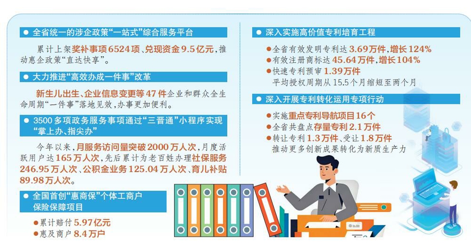 營商環(huán)境是企業(yè)生存發(fā)展的土壤。“十四五”以來,我省始終將優(yōu)化營商環(huán)境作為高質(zhì)量發(fā)展的關(guān)鍵支撐。全省市場監(jiān)管系統(tǒng)、審批服務(wù)系統(tǒng)立足職能、改革創(chuàng)新、攻堅(jiān)克難,從政務(wù)服務(wù)、數(shù)字賦能、市場監(jiān)管、質(zhì)量安全等多維度發(fā)力,推動全省營商環(huán)境持續(xù)優(yōu)化、市場活力充分迸發(fā),為全省全方位轉(zhuǎn)型發(fā)展筑牢堅(jiān)實(shí)基礎(chǔ)。