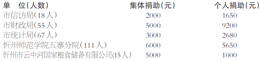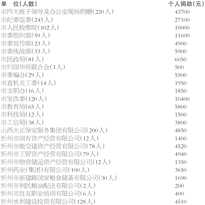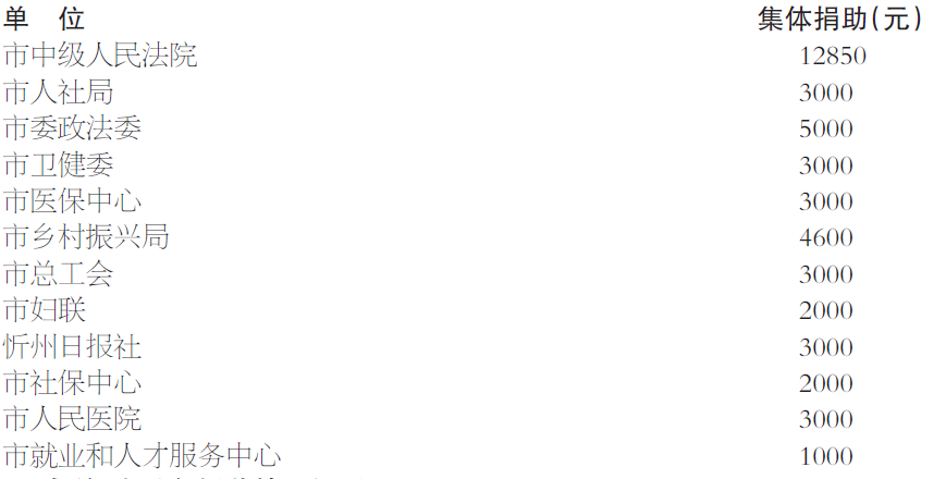 2023年11月10日,市委、市政府辦公室發(fā)出《關(guān)于開展“送溫暖、獻愛心”社會捐助活動的通知》,市四大班子領(lǐng)導和機關(guān)率先垂范,各縣(市、區(qū))、各單位高度重視,認真組織,廣大干部職工積極響應(yīng),“送溫暖、獻愛心”社會捐助活動有效開展。截至2024年4月底,市直133個單位組織干部職工參與捐助,共捐款83.37萬元,各縣(市、區(qū))接收捐款365.92萬元,合計捐款449.29萬元,為解決我市困難群眾的基本生活問題起到了積極作用?,F(xiàn)將捐助情況公告如下(市直單位以捐助時間先后為序):